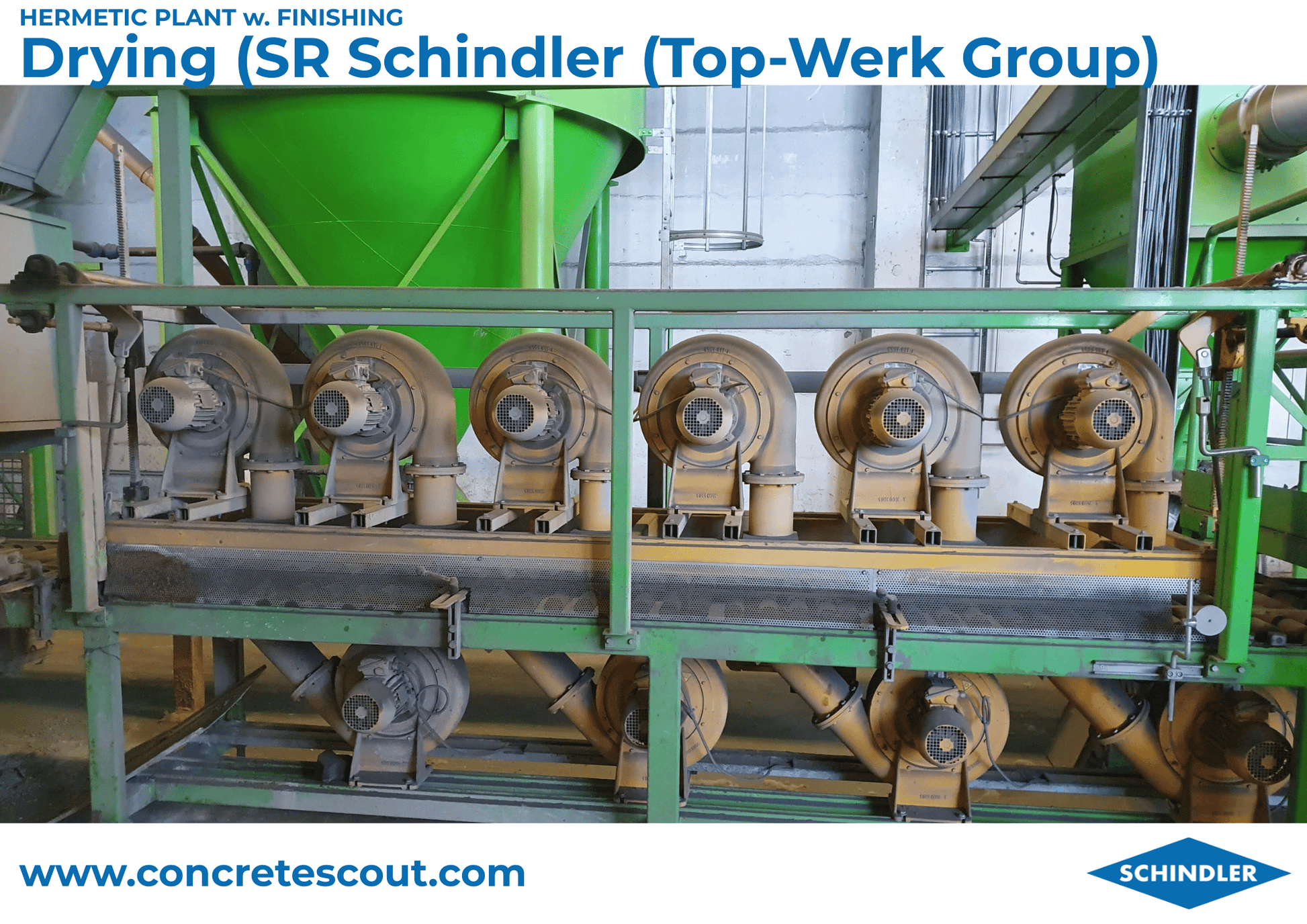 The plant consists of machines from multiple manufacturers and the machines were built in the 1990s to 2012. The today's plant was installed in 2012 by SR Schindler (Top-Werk Group) and can be visited running without concrete.
