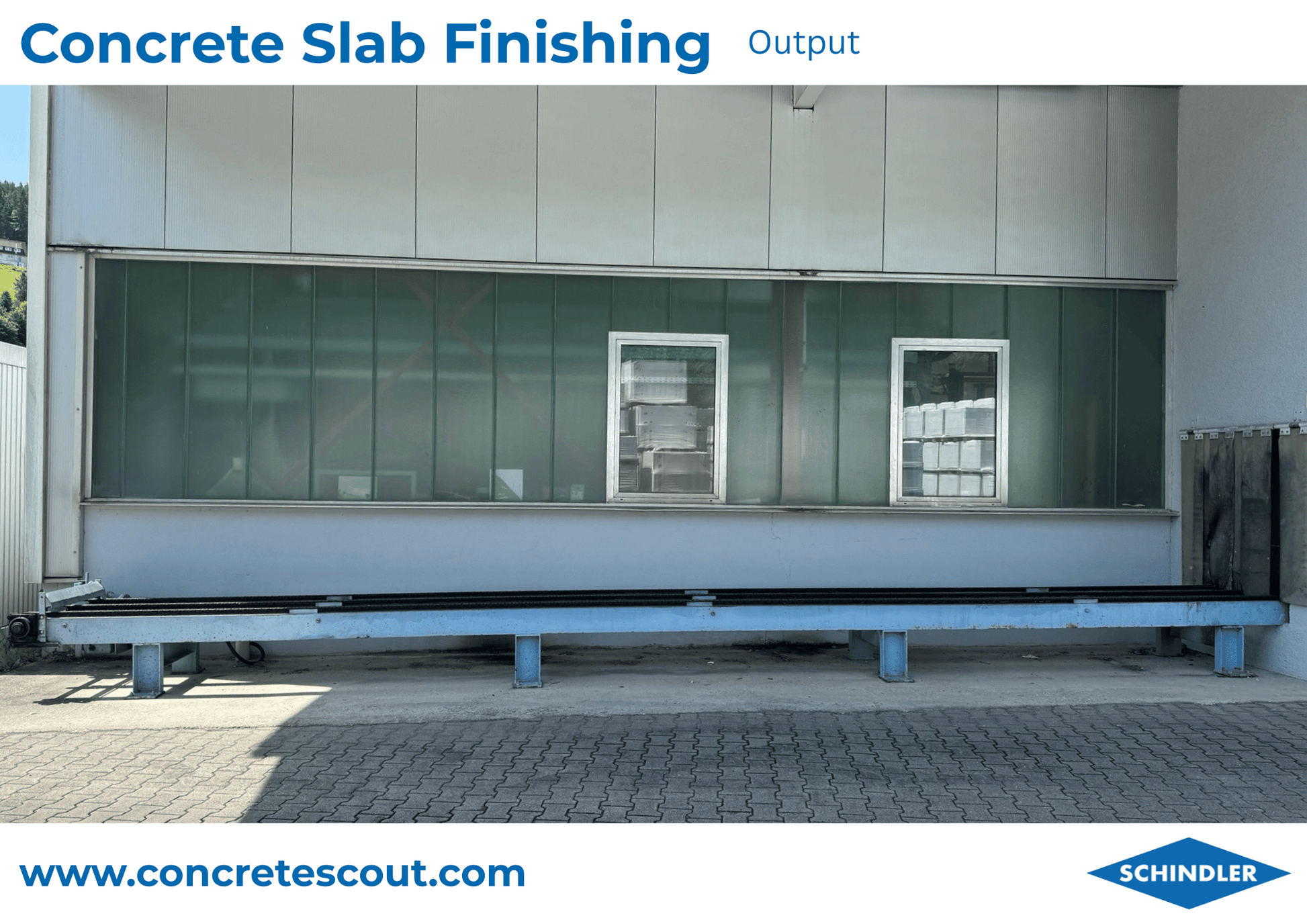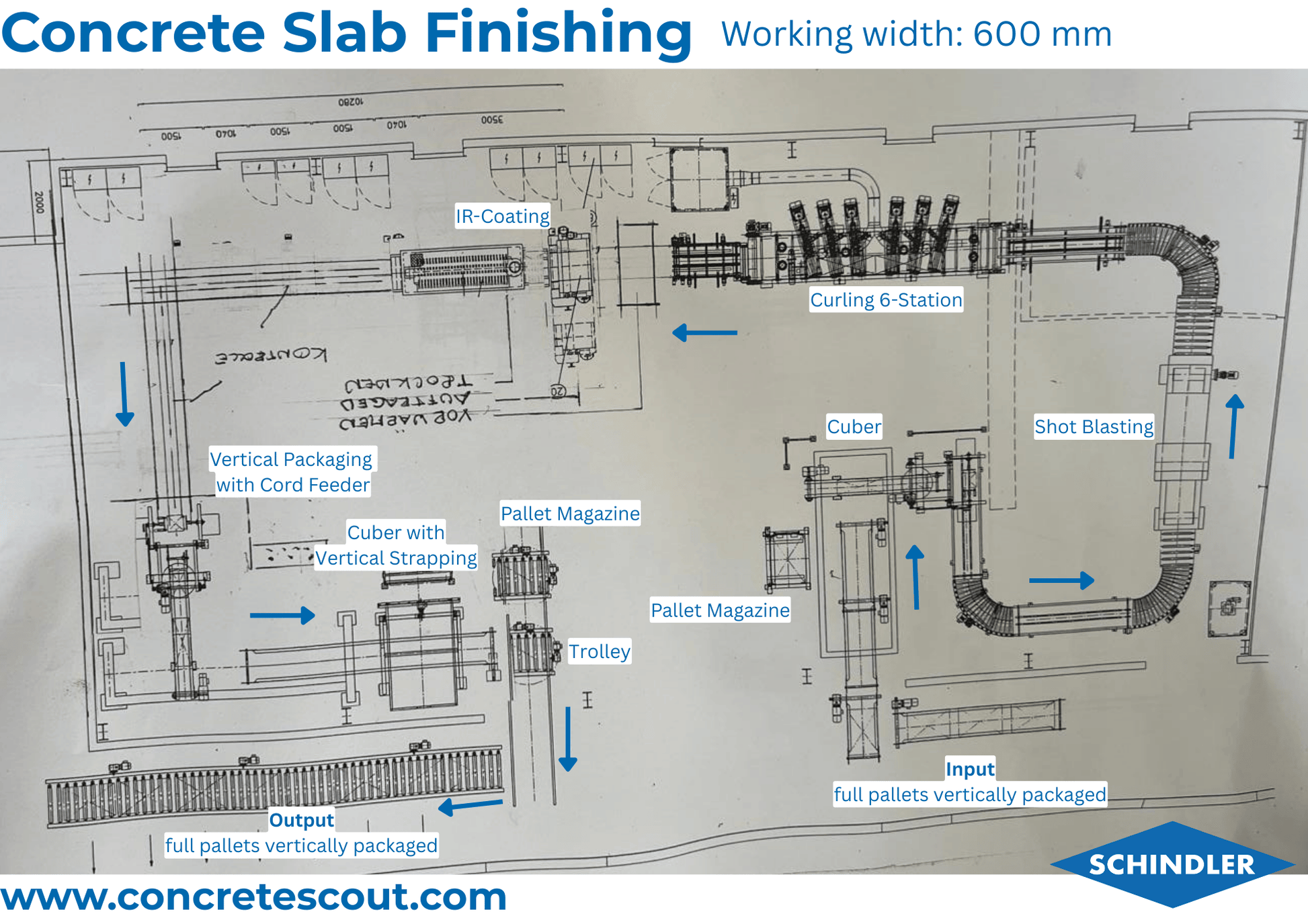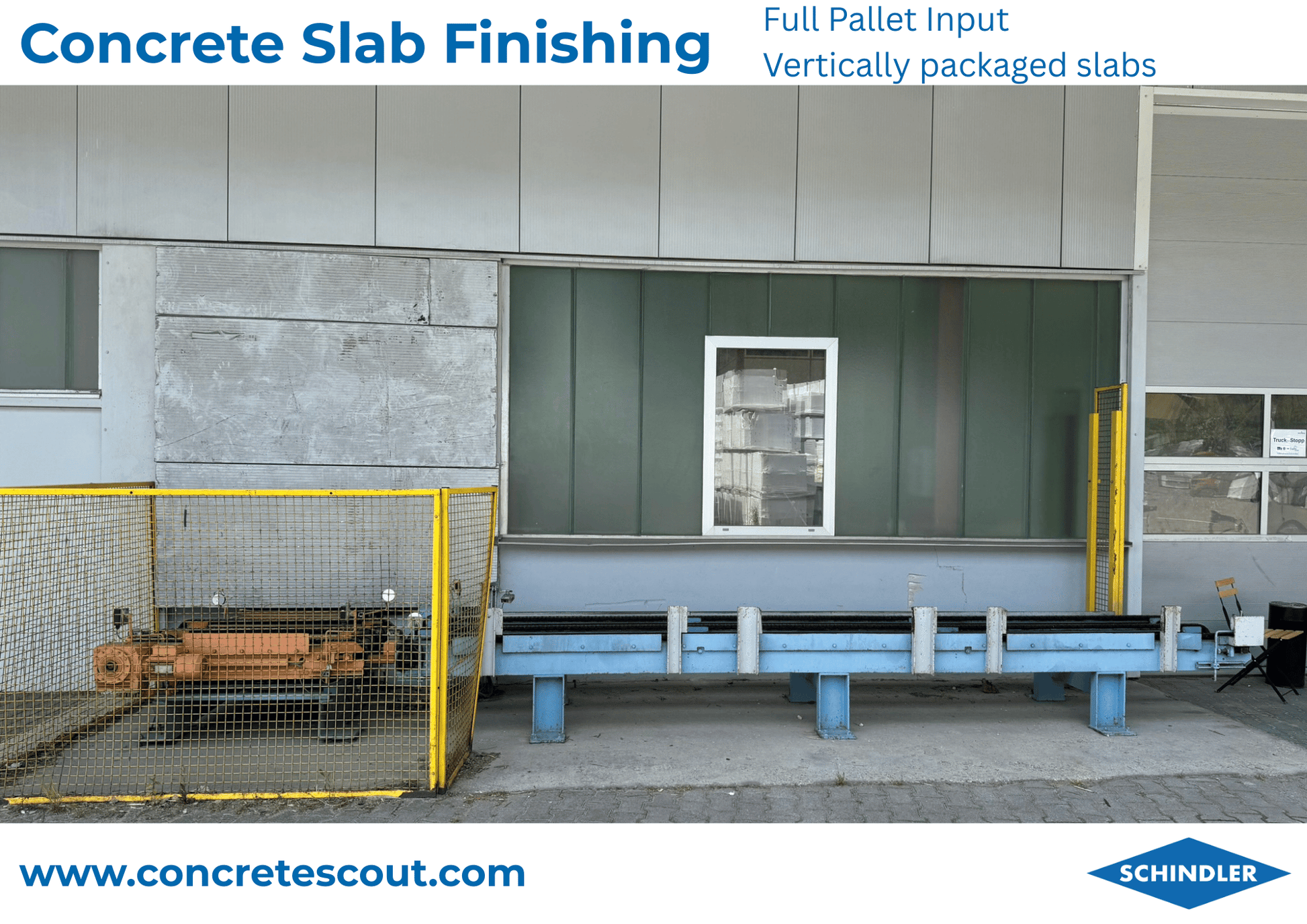- Input for full pallets with upright standing concrete slabs